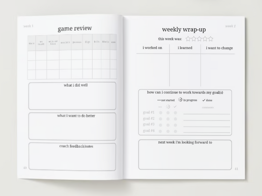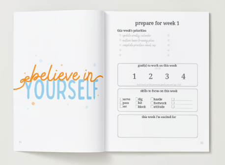 Our interactive volleyball journals are a perfect tool for young athletes who aspire to play at the next level. Drawing from personal experiences playing Division I college volleyball, these journals offer weekly interactive activities designed to guide and inspire young athletes to pursue their volleyball dreams.